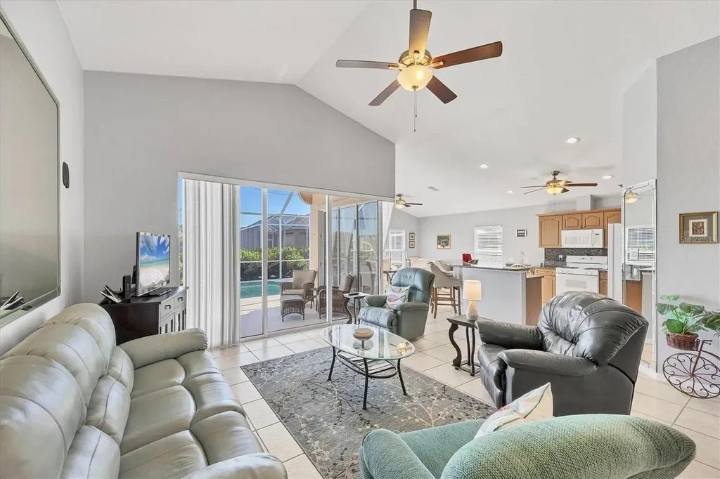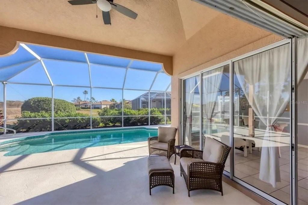 Enjoy effortless, maintenance-free living in this beautifully maintained, light-and-bright home in the desirable Fairway Commons section of Bobcat Trail. Sold turnkey furnished, all you need is your suitcase to move right in and start living the Florida lifestyle. The open-concept design with vaulted ceilings, tile flooring throughout the main living areas, and upgraded LVP in the primary and guest bedrooms creates a stylish yet comfortable atmosphere. 3rd bedroom does not have a closet, but it would be easy to add one. (County reflects this as a 2 bedroom). Zero-corner sliders seamlessly connect the indoors to the outdoors, leading to your private heated pool-perfect for relaxing or entertaining. The spacious primary suite features two walk-in closets and direct access to the pool, enhancing the sense of indoor-outdoor living. This home is packed with recent upgrades, including a new roof (2023), new A/C and dishwasher (2022), gas pool heater (2022), new pool cage (2024), fresh interior and exterior paint (2024), and a new refrigerator (2026). The stove, dryer, and pool heater are all gas, and the property sits in a highly desirable “X” flood zone for added peace of mind. Located behind the exclusive gates of Bobcat Trail, residents enjoy access to resort-style amenities such as pickleball and tennis courts, a community pool, fitness center, and a lively activity center with events and social gatherings. With easy access to I-75 and US-41, you're just minutes from dining, shopping, medical facilities, and everything you need-making this truly a move-in-ready, lock-and-leave home designed for carefree Florida living.